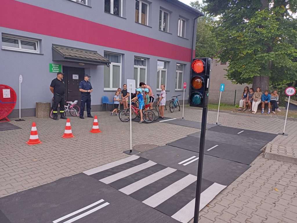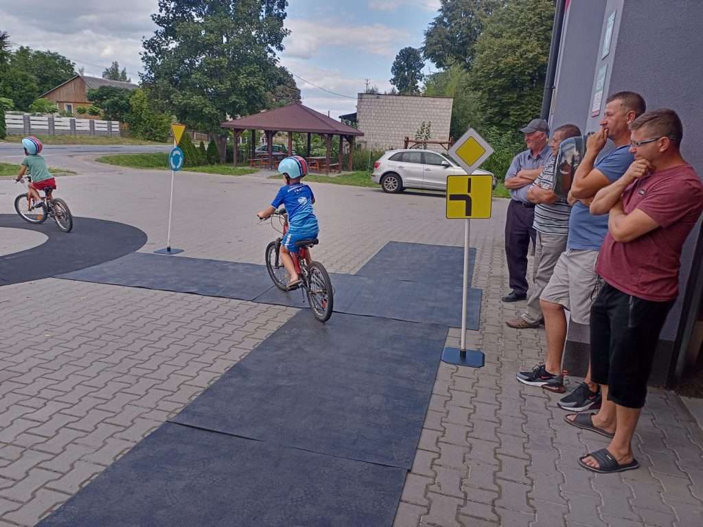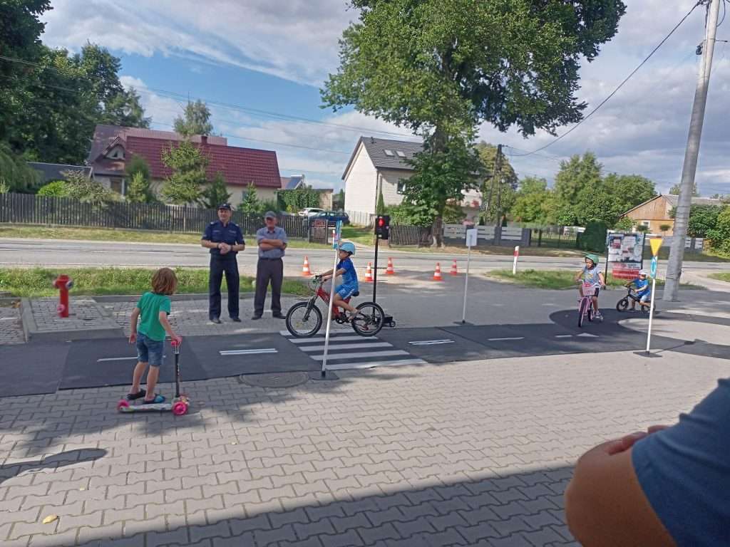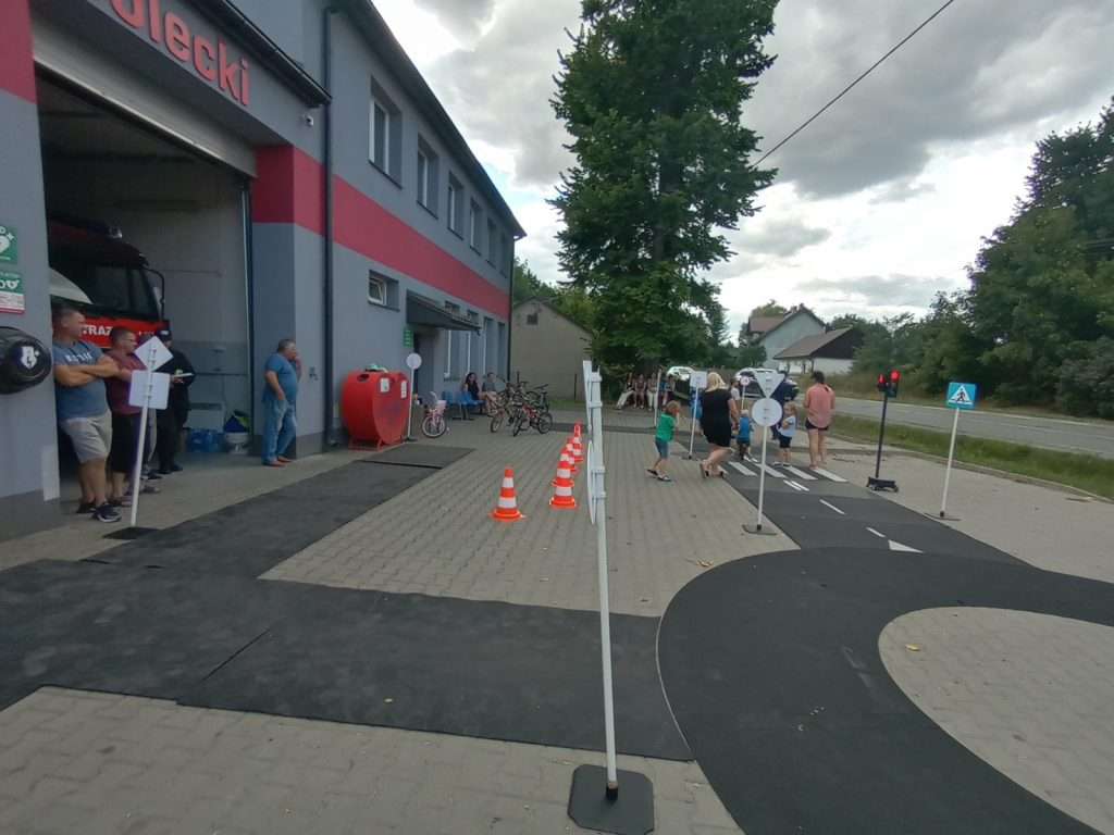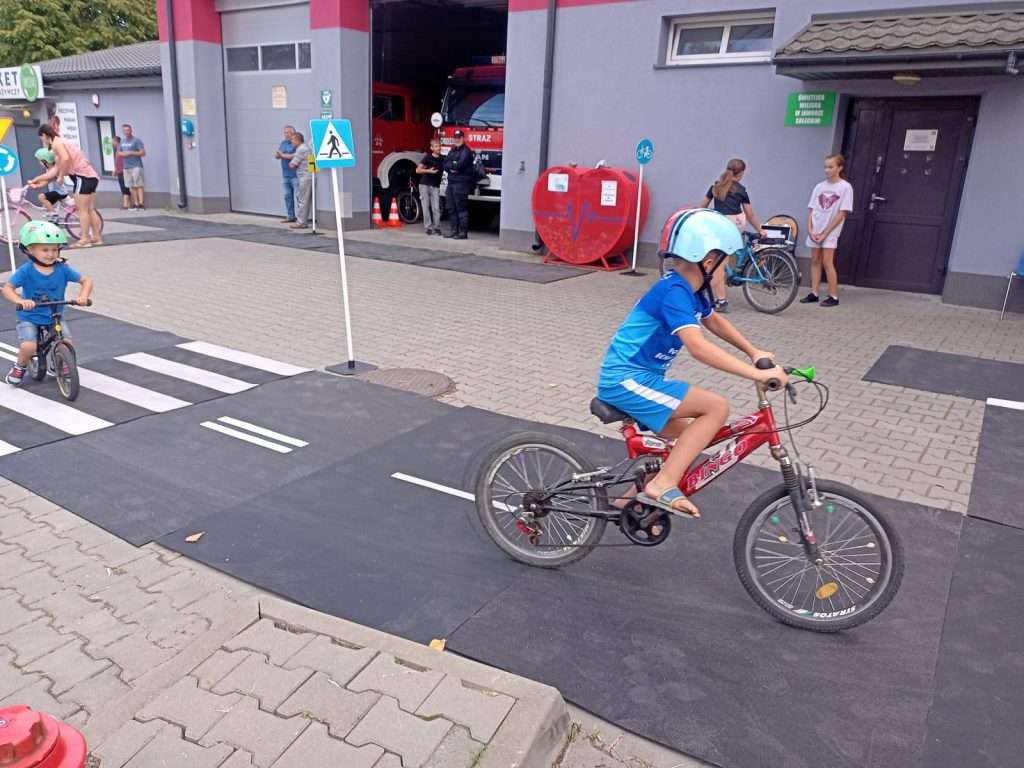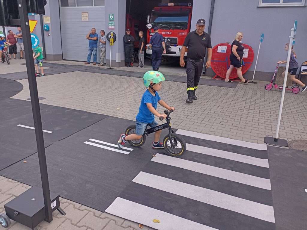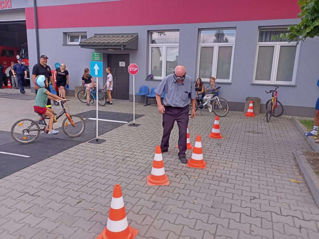 Dzieci i dorośli, pod czujnym okiem głównego prowadzącego szkolenie – funkcjonariusza policji, sierżanta sztabowego Dariusza Pastuszki (jednocześnie druha naszej jednostki), poznawali lub przypominali sobie podstawowe przepisy oraz znaki drogowe. Każdy mógł sprawdzić swoje praktyczne umiejętności, pokonując jednośladami przygotowane miasteczko ruchu drogowego. Dużym zainteresowaniem uczestników cieszył się również zestaw alkogogli, dzięki którym młodsi i starsi mogli sprawdzić jak zmienia się spostrzeganie otaczającej rzeczywistości w zależności od stężenia alkoholu we krwi.