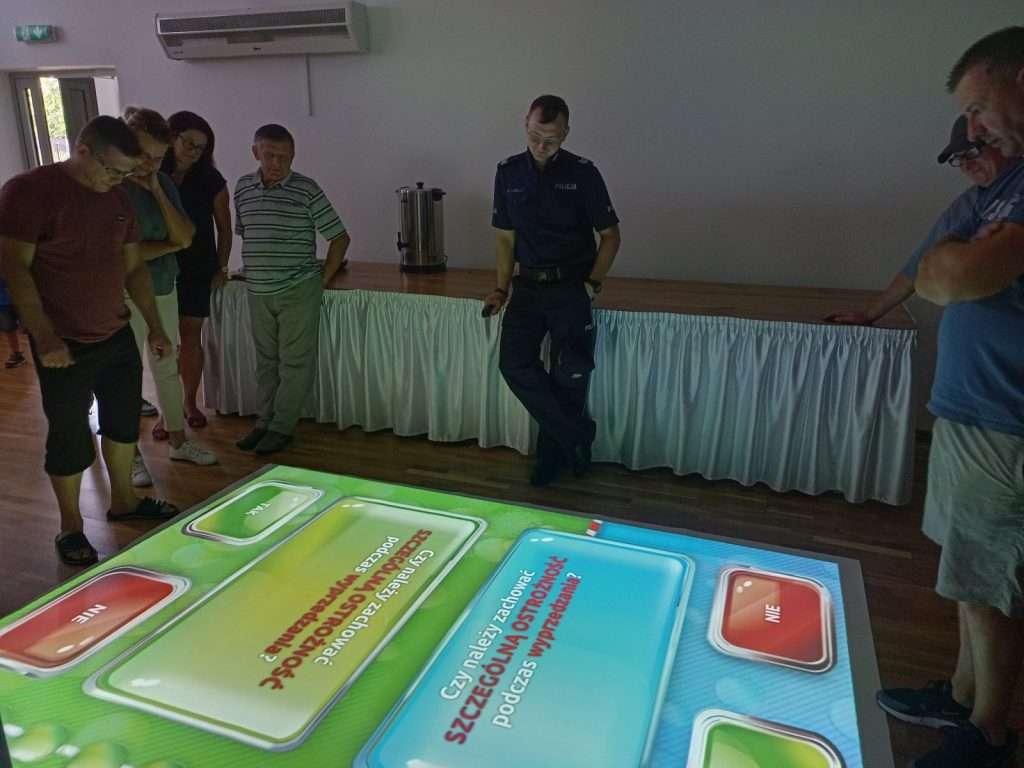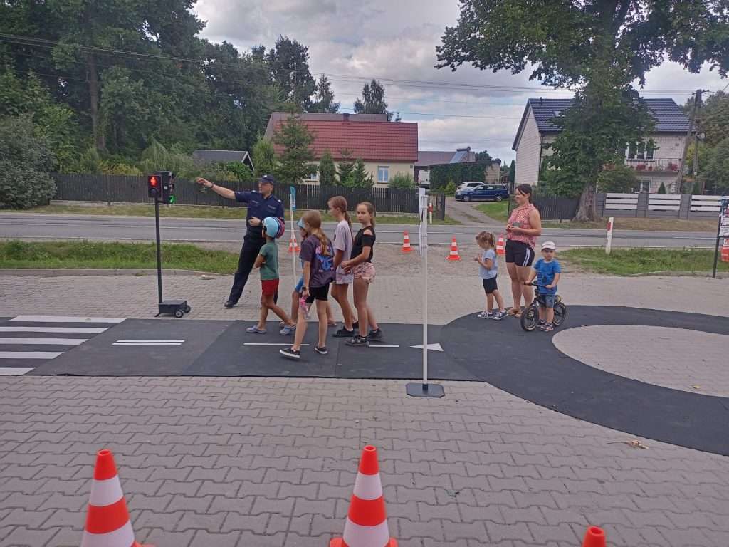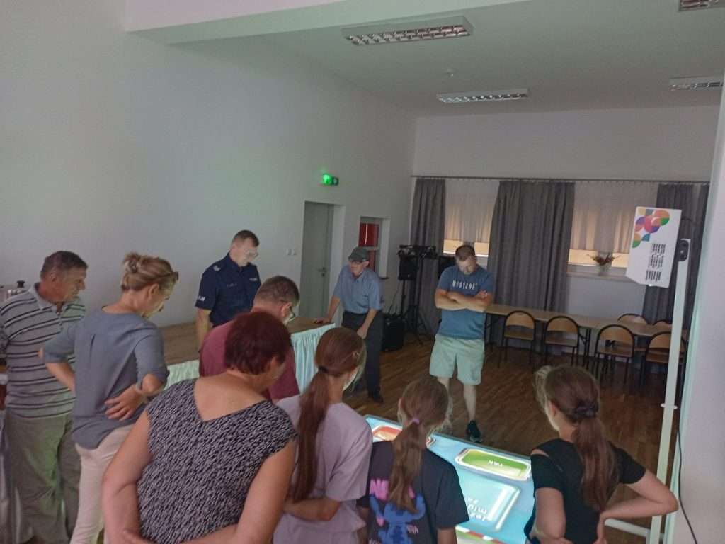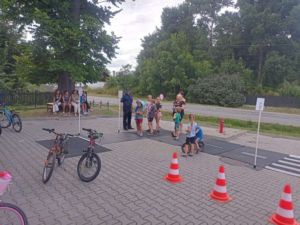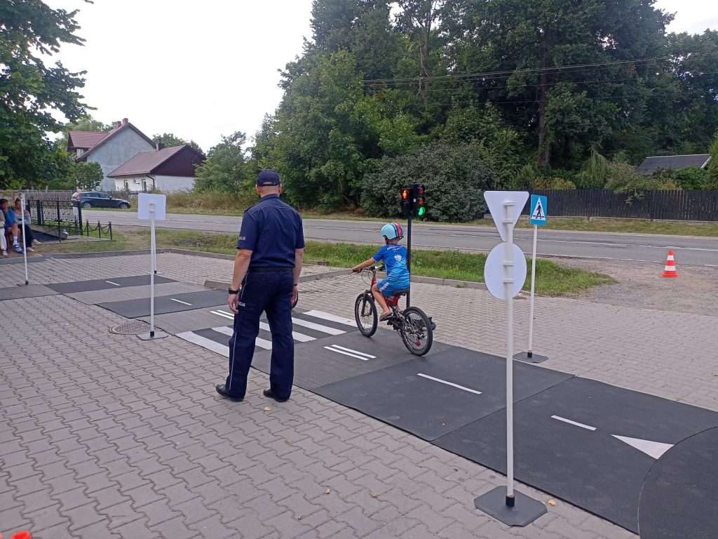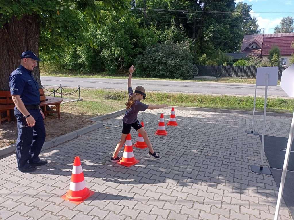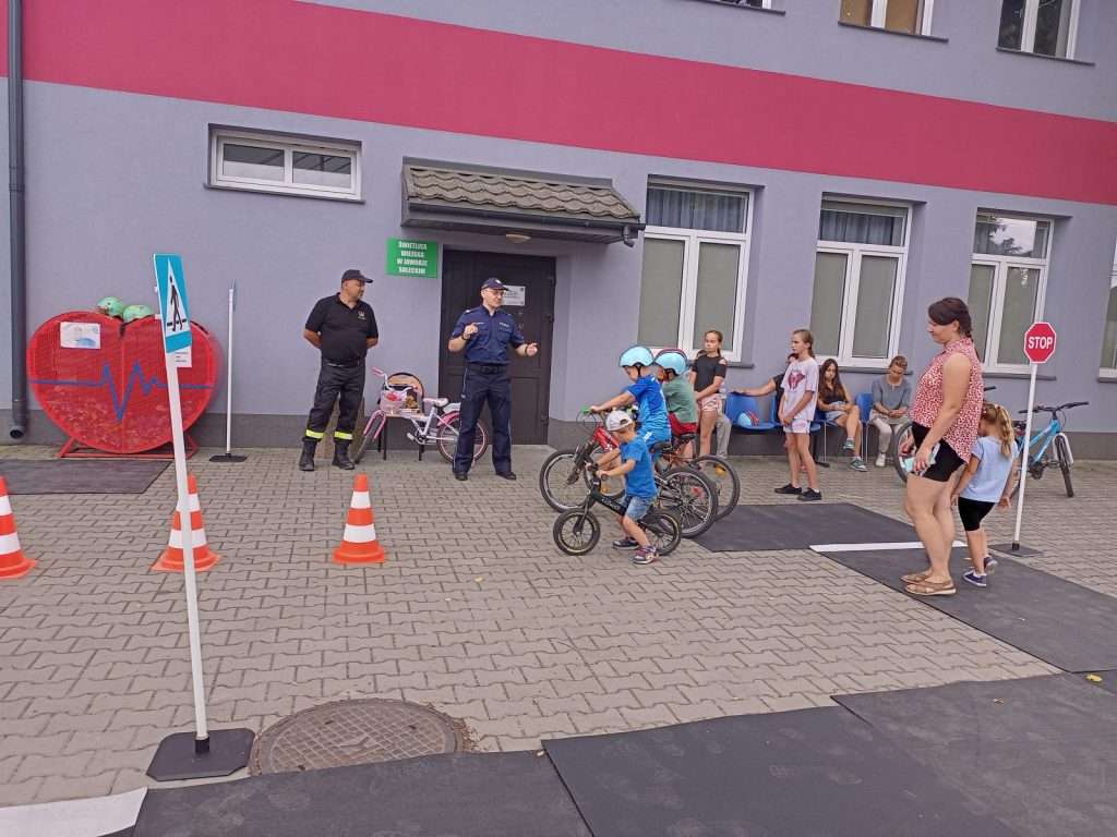 Dzieci i dorośli, pod czujnym okiem głównego prowadzącego szkolenie – funkcjonariusza policji, sierżanta sztabowego Dariusza Pastuszki (jednocześnie druha naszej jednostki), poznawali lub przypominali sobie podstawowe przepisy oraz znaki drogowe. Każdy mógł sprawdzić swoje praktyczne umiejętności, pokonując jednośladami przygotowane miasteczko ruchu drogowego. Dużym zainteresowaniem uczestników cieszył się również zestaw alkogogli, dzięki którym młodsi i starsi mogli sprawdzić jak zmienia się spostrzeganie otaczającej rzeczywistości w zależności od stężenia alkoholu we krwi.