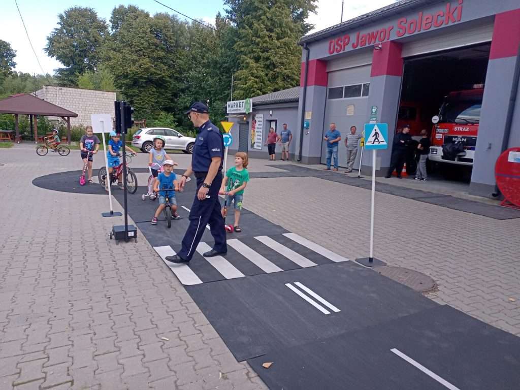 Bezpieczne i zgodne z przepisami poruszanie się w ruchu drogowym stanowiło główny temat kolejnych zajęć realizowanych w ramach projektu „Razem dla wspólnego bezpieczeństwa – II edycja”, które odbyły się w niedzielę, 17 sierpnia, w siedzibie OSP w Jaworze Soleckim.