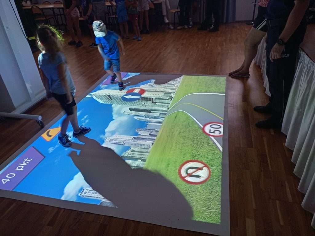 Podsumowaniem zajęć był konkurs zorganizowany z wykorzystaniem podłogi interaktywnej, podczas którego – oprócz znajomości przepisów ruchu drogowego – liczyły się również spostrzegawczość oraz czas reakcji. Zwycięzcy zostali nagrodzenie przydatnymi nagrodami, zaś każdy uczestnik szkolenia otrzymał brelok odblaskowy LED, poprawiający bezpieczeństwo poruszania się po zmroku.